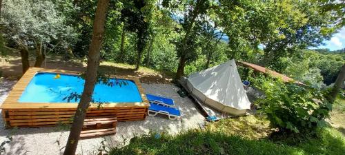 Bell-Tenten Quinta Pomar Do Pontido is located in Cabeceiras de Basto, just 21 miles from Canicada Lake and 23 miles from Sao Bento da Porta Aberta Sanctuary. This property offers access to a terrace, darts, free private parking, and free Wifi. The luxury tent features an outdoor swimming pool, public bath, and private check-in and check-out. There is a seating area and a kitchenette complete with a fridge, a stovetop, and kitchenware. The property has an outdoor dining area. Guests at the luxury tent can enjoy walking tours and bike tours nearby, or make the most of the garden. Guimarães Castle is 23 miles from Bell-Tenten Quinta Pomar Do Pontido, while Ducal Palace is 23 miles from the property. Francisco Sá Carneiro Airport is 60 miles away.