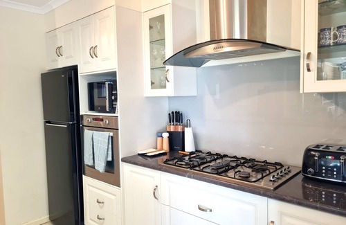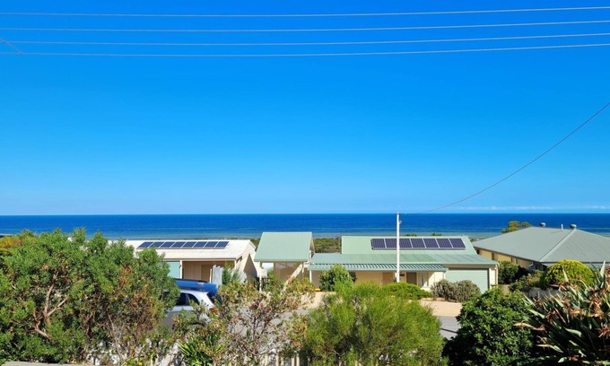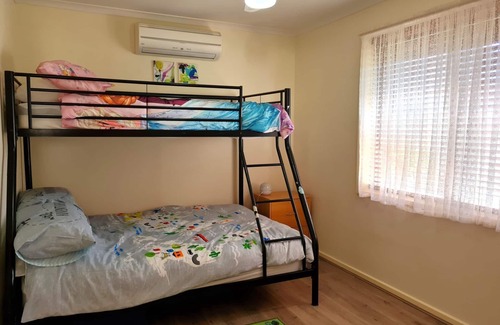 PROPERTY DETAILS: 4 bedrooms - queen; queen; queen; trio bunk (double on the bottom, single on the top). Sleeps 9 (maximum 8 adults, top bunk only suitable for children); Quilts, blankets and pillows provided – BYO sheets, pillowcases, towels, bathmats & tea-towels OR optional linen hire. Portacot (guests need to bring all bedding to use). Ensuite bathroom adjoining master queen bedroom with walk-in shower, vanity and toilet; Main bathroom with bath and walk-in shower, and vanity; Separate toilet. Reverse cycle split-system air-conditioning in living area and trio bunk bedroom; Ceiling fans in all bedrooms and living area; Portable heating. Spacious living area at front of house with seaviews; Living area has lounge seating, and adjacent dining room with access to outdoor entertaining area. Well-equipped kitchen with gas stovetop and oven, microwave and medium-sized fridge with freezer on top; Kitchen appliances including kettle, toaster and electric frypan; Bar fridge for bait or drinks in laundry. Spacious lounge room with sofa seating and access to outdoor entertaining area; Large television with USB and HDMI ports; Soundbar; DVDs; Board games; Books; WiFi for guests. Desk for remote working in trio bunk bedroom; Television with built-in DVD player. Front load washing machine / clothes dryer combo; Iron; Ironing board; Rotary clotheslines in rear yard. Undercover entertaining area with seating and dining; Weber gas barbecue. Table tennis and dart board located in shed. Seating on front verandah with seaviews; Swing chair on front verandah. Fenced rear yard; Lawned area at front and rear of house. Off-street driveway parking for 2 cars; Boat parking on street due to steep driveway. 5-minute walk to beach, with beach access via dedicated paths; Access to Walk The Yorke trail along beachfront. 5-minute drive to Ardrossan, including shopping and dining. Pets by arrangement only ($100 refundable bond applies per pet) - outside pets accepted.