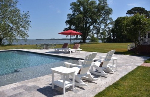 It has a fully renovated Main house, and a well-appointed guest house in addition to the Boat House, dock, pool, hot tub, fire pit, and gazebo. You'll never want to leave this hidden gem! There's an extraordinary amount of room for large gatherings of family and friends both indoors and out. Outdoors, you'll have Freightliner views of the Choptank River and an outdoor shower where you can rinse off the sand and fun before jumping into the newly built swimming pool with a lounging deck! Throw some steaks on the gas grill, located in the poolside gazebo, and enjoy supper al fresco. The crab house has everything you need for an Eastern Shore crab feast: a fridge, sink, stove, tables, and a TV for watching the games. Four kayaks are available for use. Rent a boat and dock it in the Boathouse!