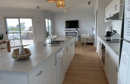 Stay in this fabulous modern 4 bedroom home with gorgeous views over the crystal clear waters of Eastern Cove.