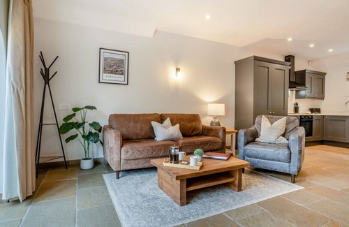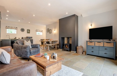 Entering this delightful hideaway, the spacious open-plan lounge/kitchen/diner provides an ideal spot for you all to get together and unwind after a great day out. The welcoming lounge has flagstone flooring, a Smart TV and a lovely wood burner, perfect for relaxing in front of following a hearty meal around the dining table over in the corner. The sleek and beautifully organised kitchen has a wealth of equipment for rustling up family feasts. When it’s time to turn in for the night, you will have a choice of two fresh and cosy bedrooms, each with French doors opening out onto the patio: there’s a bright and stylish king-size room and a cheerful twin. The accommodation is rounded off with an elegant, beautifully tiled wet room with a shower and WC.