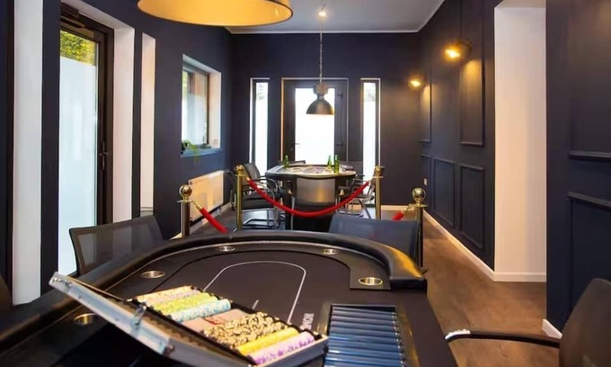 Schon beim Betreten werdet ihr von unserem einladenden Flur empfangen, der eine umfangreiche Poker- und Billard-Area beherbergt. Ob als große Gruppe oder in kleineren Runden, hier findet ihr alles, was das Herz begehrt: ein eigenes Billardzimmer, ein Herrenzimmer, Pokertische, Nintendo Switch, Kickertisch und sogar ein Heimkino mit originalen Kinostühlen.