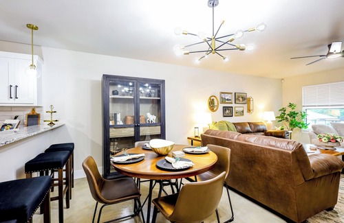 Stay minutes from UMHB, Nolan Creek, and historic downtown Belton in this stylish 3BR/2BA duplex with a fenced yard and driveway parking. Fast Wi-Fi, a 65″ smart TV, in-unit laundry, and a fully stocked kitchen make it ideal for families, travel nurses, or relocations. Pets welcome! Relax in the fenced yard or explore nearby trails, shops, and lakes. Driveway fits 4 vehicles. Keyless check-in makes arrival a breeze.