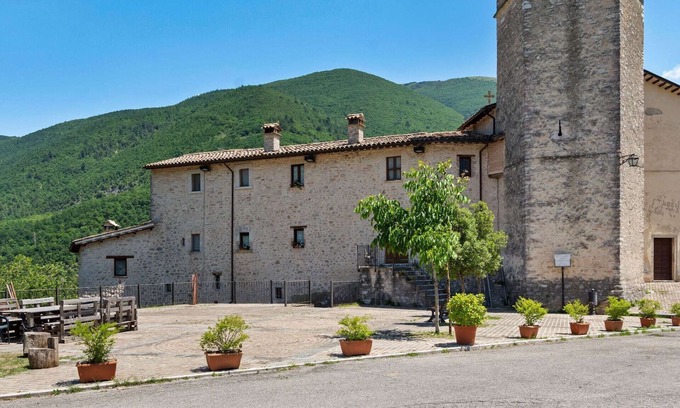 "This comfortable 2-bedroom is situated in the medieval village of Scheggino on top of a hill in the heart of Valnerina. Located a few km from the Marmore waterfalls, it is ideal for a small family or a group of 5 and has a fireplace in the living room so you can curl up beside it during peak winters, a balcony to enjoy the views and a parking facility to keep your cars unscathed.