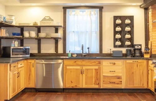 Sit up at the breakfast bar with seating for four as you enjoy your morning coffee while you keep the chef company as they cook up delicious bacon and eggs for the group, then eat together in the eclectic dining room with seating for six.