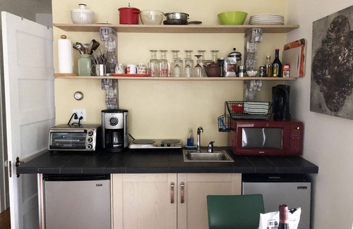 The cottage features (2) bedrooms, living room, kitchenette, screened in porch and (1) bathroom. The master bedroom contains a Queen sized bed and plenty of closet space. The second bedroom has a trundle bed with a riser and it sleeps (2). The building is semi attached to the main house. It has a separate entrance. And private outdoor area It is a roomy 800 sq ft, recently renovated, and beautifully decorated. You can easily prepare a great breakfast, lunch and even dinner (BBQ) or choose to sample one of the many restaurants in Great Barrington.