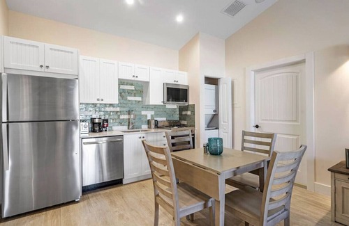 All units have two (2) 43-inch TCL Roku flat-screen digital TV`s (ROKU built-in): one in living room and one in bedroom #1. This bungalow is wheel-chair accessible and has a glass frame-less shower for easy wheel-chair access and extra-wide doors. All high-end brand new furnishings, decor and linens. Bedroom #1 has a queen-size bed and bedroom #2 has two (2) twin-size beds. Living room has comfortable full-size sleeper sofa. Spacious living areas with luxurious modern Bermuda-style furnishings that include full kitchens with washer and dryer units! Stunning high-end finishes and exceptionally well-maintained premises. Surpasses the feel and quality of most 5-star hotel rooms! Brand new digital flat-screen TV`s with built-in ROKU systems and super high-speed (WIFI) internet! Sleeps up to 6 people! All bungalows are ground-floor. Onsite off-street parking available on premises. Professionally decorated by designer with a warm coastal beach feel. Open spacious kitchen fully equipped with coffee-maker, blender, toaster, microwave, dishes, pots, pans and kitchen utensils. Each bungalow also includes a dining room table. Bathrooms also include a hair dryer, iron and ironing board. Every bed includes high-end mattresses with high thread count linens as well as a 2nd set of linens for each bed. Limited laundry detergent, dish soap, paper towels and toilet paper are provided for your convenience. Each new booking receives their own personal auto-generated digital access code from the new state-of-the-art August key-less front-door entry systems that sync with Airbnb making it safer and even easier for you to arrive at your desired time!