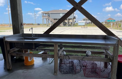 A grill and charcoal are provided downstairs for those who prefer cooking their own burgers, steaks, fish etc. A large stainless-steel table and sink downstairs makes cleaning your fish and or crabs so much easier. The kitchen is stocked with large gumbo pots for boiling shrimp or crabs.