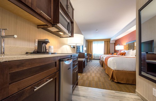 Best Western Plus Chateau Fort St. John offers 123 air-conditioned accommodations with MP3 docking stations and safes. Beds feature pillowtop mattresses. Cable television is provided. Refrigerators, microwaves, and coffee/tea makers are provided. Bathrooms include showers, complimentary toiletries, and hair dryers.
