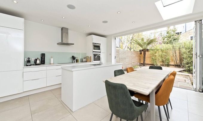 At the back of the house, unwind in the dining space as someone prepares a well-deserved meal or enjoy a take-out from one of the many local restaurants like Franco Manca or Rosa’s Thai, Clapham.