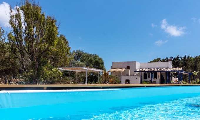 It is a house where it is easy to feel comfortable. The sleeping areas both have independent entrances and the large living room that separates them offers a large conversation area, large full hd flat screen TVs, music and many books. The external verandas are all equipped with sofas and armchairs. It is pleasant to have lunch outside under the large canopy, taste excellent fish roasted on the barbecue or maybe freshly baked bread in the wood oven. In the garden surrounding the house, plants of all kinds coexist, as in a fascinating symbiosis: agaves, cacti, aloes, maritime pines, wild olive trees, oleanders, palms and carob trees. Enjoy the coolness lying on one of the many hammocks in the pine forest after a dip in the pool or on the way back from the sea, jogging at sunset, walking the beaten white streets around the house .... It is a magical place, it is a wonderful island!