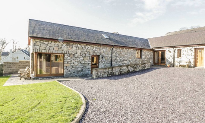 This end-terrace barn conversion cottage is located in Llangoed near Beaumaris and can sleep four people in two bedrooms.