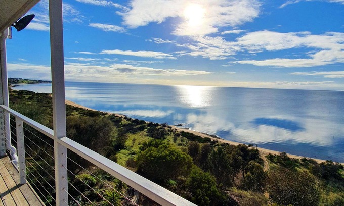 Beyond the Point is situated near Black Point on a cliff 20m above the water overlooking Gulf St Vincent, approximately halfway between Ardrossan & Port Vincent. A modern 3 bedroom, 2 bathroom holiday home on an elevated site providing 180 degree stunning coastal views from Pine Point around to the point of Black Point. Set on an acre, your privacy is assured - there are no near neighbours to annoy or be annoyed by. A great place to stay whatever the weather - views of storms rolling in are amazing.