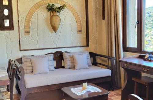 The standard studio offers privacy, calmness and a fabulous view to the sea from your living room and your balcony. It is idealy suited for 2 people but could accomodate up to 4 people with a sofa bed and a single bed. Sized at 40 m² with a fully equipped kitchen, a comfortable living room and a big bedroom with high quality mattress. Designed with artistic details, creating the cretan atmosphere.