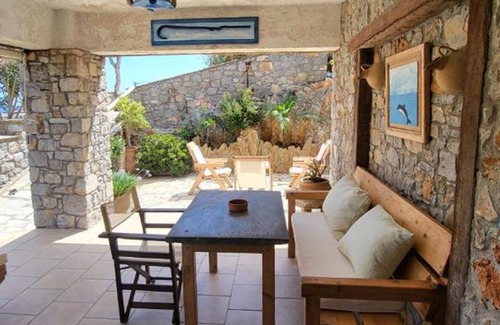 This is a ground floor apartement with one bedroom isolated from the kitchen and the living room. It can accomodate up to 4 persons with two extra single beds. Traditionally designed with comfortable veranda and outdoor space. Private seaview point 10 m away.