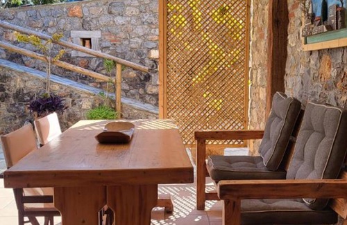 The family apartment is 40 m² with two bedrooms and a comfortable fully equiped kitchen with a living room. It can accomodate up to 5 persons. The 5th person can stay at the living room in a single bed. Private veranda with view to the surroundings and outdoor space for your relaxing moments. Designed with artistic details, creating a cretan atmosphere. Seaview point at just 15m away.