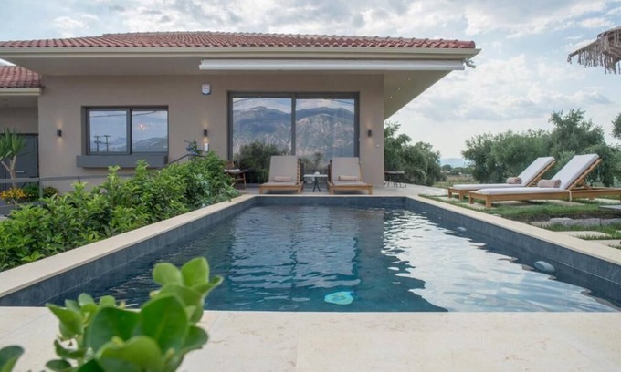 The villa in Kalamata offers a villa with a garden, terrace, and seasonal outdoor swimming pool. Free WiFi is available throughout the property.