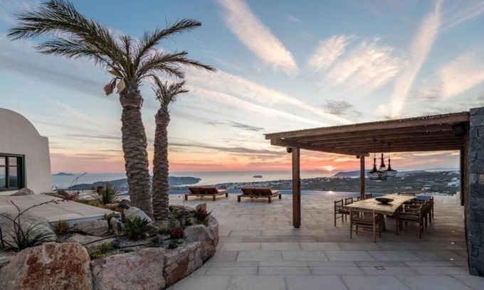 Best-rates for the Santorini villa starts from $1,971 per night with includes TV, View, Ocean View, Fireplace/Heating, Child Friendly, Parking, Private Pool, Balcony/Terrace, Bedding/Linens, Wellness Facilities, Internet, Kitchen, Laundry, Air Conditioner, Pool, Security/Safety, Pet Friendly With all other amenities. Float Homes offers a wide range of floating homes, houseboats, and water chalets, ensuring each traveler finds their ideal water escape, whether planning a water getaway, a family vacation, or a pet-friendly retreat with the whole group.