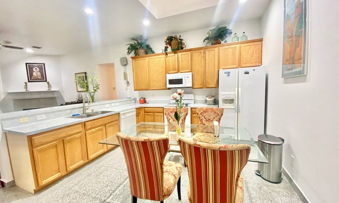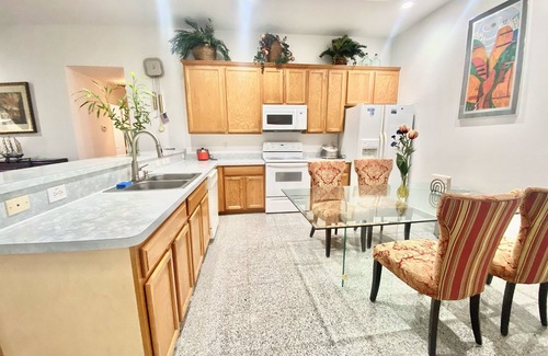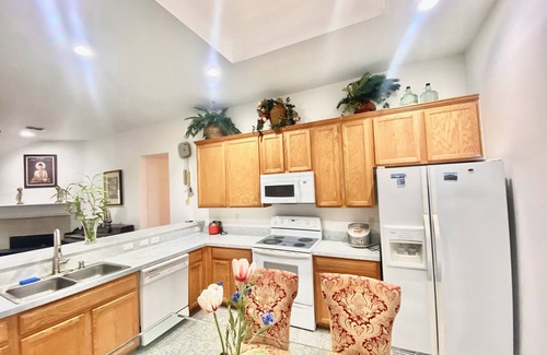 The house is spacious and furnished with 4 bedrooms and smart tv’s with Netflix in every room. The AC split inside the room has hot and cold functions. It has two living rooms. The kitchen comes with all bowls, plates, utensils, and pans. 2 big bathrooms are renovated with walk in showers and have shampoo, conditioner, and body wash. Laundry room will have detergent and drier sheets for you to use.