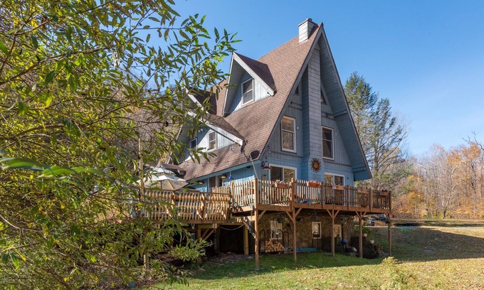 6 Bedroom 2 Bath 2 Family Room chalet nestled on 55 acres is the perfect place to escape and relax with your family and friends. Mother Nature controls the stream flowing through the property. Hike your own private mountain or renowned trails a mile away. Roast some marshmallows at the fire pit or tap a nap on the hammock. The property is truly magical!