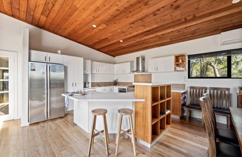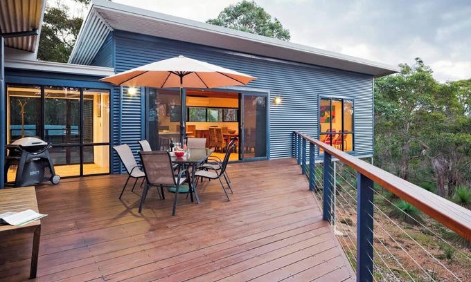 Nestled high on the hill in Big Rock Reserve, this well-equipped retreat offers bushland views with glimpses of the Indian Ocean. Relax in the open-plan living area, fire up the BBQ on the deck, or unwind by the fire pit. The home also offers an outdoor shower, a dedicated workspace, and a cosy rumpus room for extra space. A short stroll takes you to Clancy’s Fish Pub, or explore nearby beaches, wineries, and Country Life Farm for a fun-filled escape in nature.