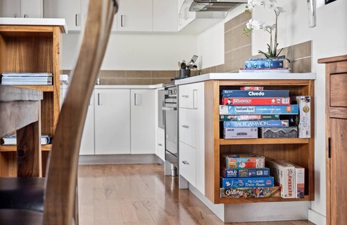 Set on six private acres, nature meets comfort in this thoughtfully designed home. The open-plan living area boasts floor-to-ceiling windows, allowing natural light to flood the space while offering serene views of the surrounding bushland. A Smart TV, board games, and plush seating create a cosy spot to unwind, while a separate rumpus room offers an extra space to relax or answer emails on the dedicated workspace.