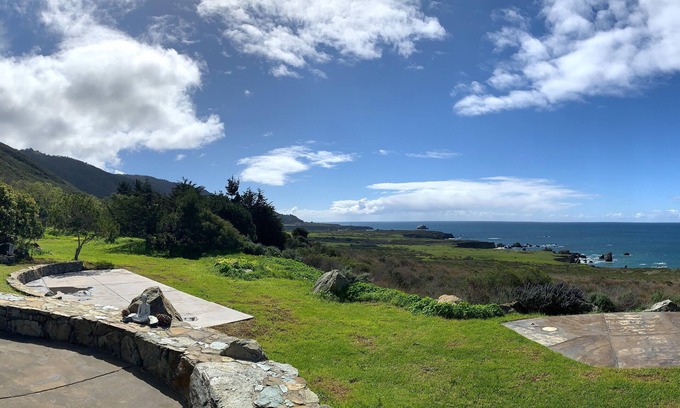 Big Sur Stone House is a fully sustainable ocean view home in the center of a wide marine terrace with uninterrupted views of the Pacific coast to each far horizon.