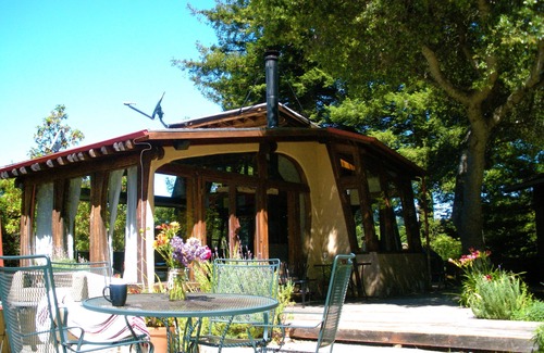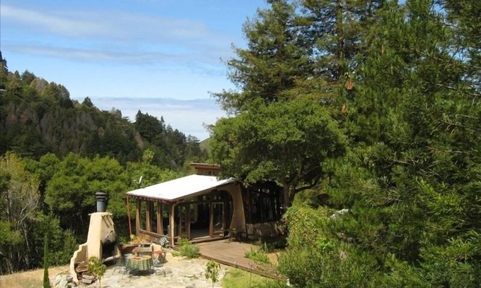 Drive up to your own privately paved and gated driveway to a home with a full 365 degree view of redwood and oak ridges. Full sun all day long. Perfect for one or two people. Arrive, relax and take a dip in the hot tub viewing the beautiful mountain ridge as birds sing and red tailed hawks circle above.