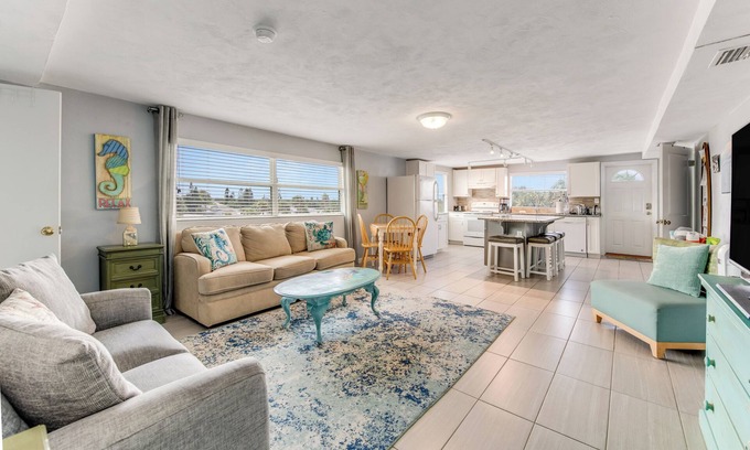 Enjoy our loft by the sea in beautiful Ormond by the Sea. Large 2nd story across the street from the beach with a public walkway. All brand new appliances, kitchen , and bathroom. Includes a washer and dryer. Do not be deterred by the one bathroom. We have made it so every room has a "make up station". I have traveled plenty of times with multiple people and know the importance of having plenty of room to get ready! After a day on the beach you can relax on the upper deck with your favorite cocktail while enjoying the Ocean views. In the morning you will capture some extremely beautiful sunrises and as the day winds down you will be in awe of the incredible sunsets! You are steps from shopping and restaurants. Lenny's New York Pizza is a must! Publix supermarket and plaza right there. A short 6 mile drive south gets you to world famous Daytona beach and Main Street. An 8 mile drive north will get you to Flagler Beach. St. Augustine is just north of there.