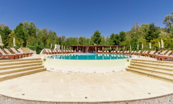 Located in a tranquil seashore complex, this modern, 2-bedroom holiday apartment for 4 offers great relaxation amenities including a shared pool and a private terrace. Inside, the first-floor apartment is air-conditioned for a comfortable stay and has direct access to the terrace with open-air dining and a kitchen. Guests can also relax on the private beach area or explore stunning volcanic natural sites just a 10-minute drive away. The residence offers a delightful service area with a bar and beach amenities, including umbrellas, deckchairs, and a shared seawater swimming pool with a hydro-massage area.