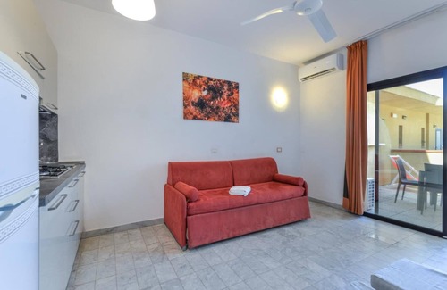 They are located on the ground or first floor and may have a terrace or balcony. The living room, with a dining area and a well-equipped kitchenette, has a sofa bed for two people or a bunk bed. In the bedroom, there is a double bed. The bathroom is well-equipped and has a shower, sink, toilet and bidet. They are furnished in a simple and comfortable way and have air conditioning, satellite television, and telephone.