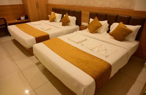 Located 4.1 miles from Mysore Palace, Bimba Hotels offers 3-star accommodations in Mysore and features a terrace. The property is around 9 miles from Brindavan Garden, 1.9 miles from DRC Cinemas Mysore and 2.2 miles from GRS Fantasy Park. The property provides a 24-hour front desk, airport transportation, room service and free WiFi throughout the property. The units are equipped with air conditioning, a flat-screen TV with satellite channels, a minibar, a coffee machine, a shower, free toiletries and a desk. All rooms come with an electric tea pot and a private bathroom, while selected rooms here will provide you with a balcony. All guest rooms feature a closet. The breakfast offers buffet, continental or Asian options. Mysore Junction Station is 3.3 miles from the hotel, while St Philomena's Church is 3.7 miles away. Mysore Airport is 12 miles from the property.