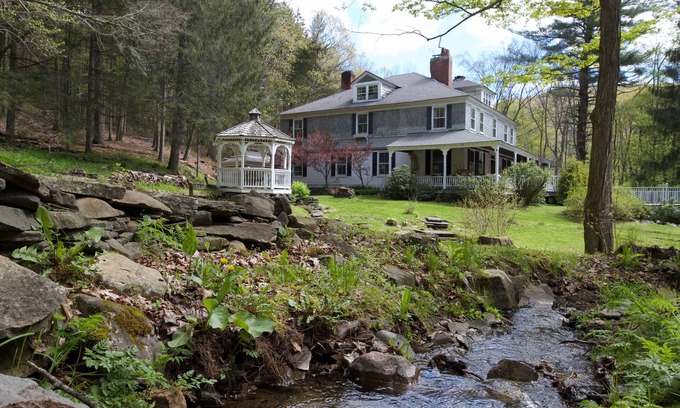 Stay at this private, sprawling & historic country home just 5 mins from Belleayre Ski Resort! This is a generously spacious home situated on 23 acres of woodlands. There is a barn and a rare keystone bridge on the property with a meandering stream that runs throughout. Perfect place to host memorable family reunions, friends gatherings & all season getaways! :) Please inquire for use of the barn.