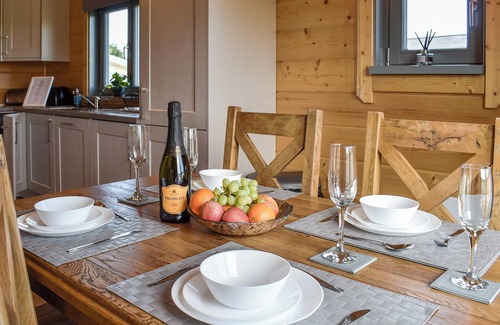 Shower Room: Walk-In Shower, Heated Towel Rail, Toilet. Electric central heating, electricity, bed linen, towels and Wi-Fi included. Highchair and travel cot. Terrace with sitting-out area and garden furniture. Landscaped grounds (shared with other properties on site). Hot tub for 4 (private). Private parking for 2 cars. No smoking. Please note: Fenced pond in grounds, 100 yards. . All properties: Electric central heating, electricity, bed linen, towels and Wi-Fi included. Terrace with sitting-out area and garden furniture. Landscaped grounds (shared with other properties on site). Hot tub for 4 (private). Private parking for 2 cars. No smoking. Please note: Fenced pond in grounds, 100 yards.. All five lodges are open plan and offer ground floor accommodation, with one double bedroom, one twin bedroom and a walk-in shower. There is a private hot tub and terrace for each lodge, overlooking landscaped grounds with four alpacas, and parking for two cars.