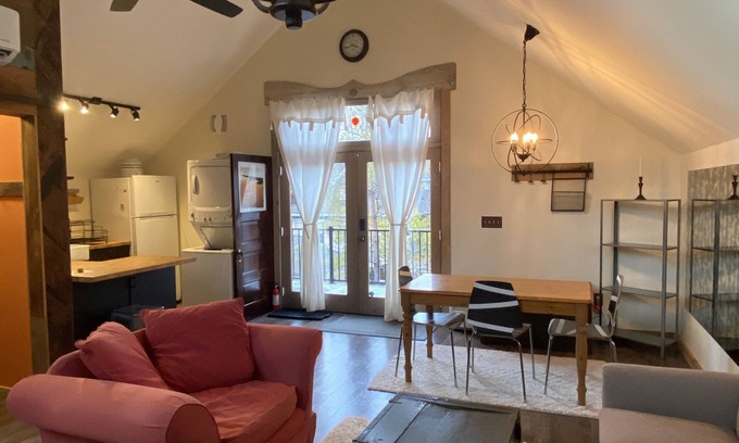 This is Quail Run, so named because it sits in the path of a Quail covey that feeds in the main house’s garden. Built in 2019, it is perched above a garage and behind the main house, this peaceful haven, nestled in the center of the block, is located in the vibrant University Historic District with many amenities within only a 5 minute walk.