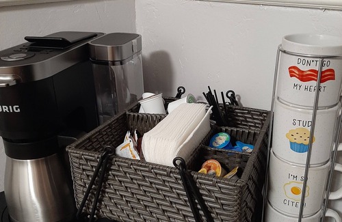 Simple studio, attached but with separate entry and key pad, so good privacy. NW Boise in a very quiet neighborhood. Kitchen has refrigerator, microwave, range, electric skillet, toaster oven, instant pot, and coffee service.