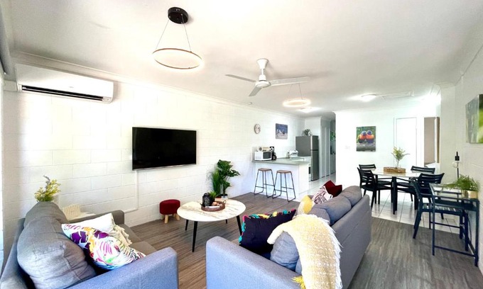 Birdsong@Beachcomber is a beachfront property located in Arcadia, 500 metres from Alma Bay Beach and 1 km from Whitfield Cove Beach. The air-conditioned accommodation is 200 metres from Geoffrey Bay Beach, and guests benefit from complimentary WiFi and private parking available on site. The apartment comes with 3 bedrooms, 1 bathroom, bed linen, towels, a flat-screen TV with satellite channels, a dining area, a fully equipped kitchen, and a patio with garden views. The apartment offers a terrace. Guests can swim in the outdoor swimming pool, go hiking or snorkelling, or relax in the garden and use the barbecue facilities. Magnetic Island National Park is 10 km from Birdsong@Beachcomber, while Reef HQ is 16 km away.