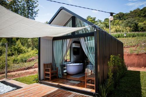 15 miles from Black Lake Gramado in Três Coroas, Black Cabana features accommodations with access to a hot tub. Guests staying at this chalet have access to a fully equipped kitchen and a balcony. There's a sun terrace and guests can use free Wifi and free private parking. Offering 1 bedroom, this air-conditioned chalet features 1 bathroom with a hot tub and a bath. A flat-screen TV is available. The accommodation is non-smoking. Guests at the chalet will be able to enjoy activities in and around Três Coroas, like walking tours. The chalet also comes with outdoor fireplace and a picnic area for a day outdoors. Gramado Bus Station is 15 miles from Black Cabana, while Saint Peter's Church is 15 miles from the property. Canela Airport is 20 miles away.