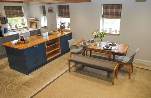 Black House Cottage consists of a kitchen with electric oven and hob, dishwasher, kettle, toaster, microwave, and fridge, a utility room with washing machine and fridge/freezer, a dining room with seating for four, and a sitting room with Smart TV. The bedrooms include a king-size with a rolltopbath and walk-in wardrobe, and a double bed with a walk-in shower and walk-in wardrobe. There is a cloakroom with basin and WC. WiFi, fuel, power, bed linen, and towels are included in the rent. Outside, there is an enclosed rear garden with lawn, patio, and furniture, as well as off-road parking available. One well-behaved pet is welcome. Sorry, no smoking at this property. Guests can find a shop within 2.2 miles and a pub within 1.6 miles. Whatever the weather, a wonderful stay awaits at Black House Cottage. Note: Pets must be kept downstairs.