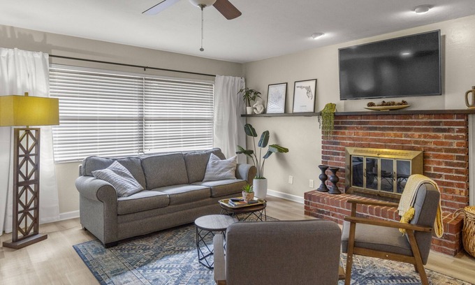 Conveniently located just 10-minutes away from the University of Florida's UF Stadium and Campus, as well as minutes away from North Florida Hospital and Santa Fe College, this spacious property features a roomy floor plan with a generous backyard. Enjoy a fully equipped kitchen and pristine bathrooms, offering plenty of space to relax. With two large living rooms equipped with Smart TVs, free parking, and a large yard complete with a fire pit, your stay will be both comfortable and entertaining