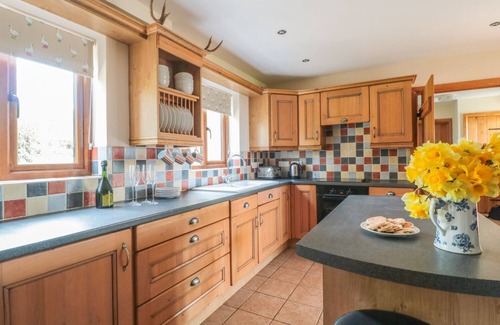 Blaen Henllan is a heart-warming cottage resting near the town of Builth Wells in Powys. Hosting four bedrooms; three doubles (one with en-suite), and a bunk room, along with a bathroom, this property can sleep up to eight people. Inside you will also find a kitchen, dining room, sitting room with open fire, and a utility. To the outside is ample off road parking and an enclosed garden to the front with decking and furniture. Situated in a lovely location and overlooking mountain views, Blaen Henllan is a delightful cottage in a pleasant part of Wales.
