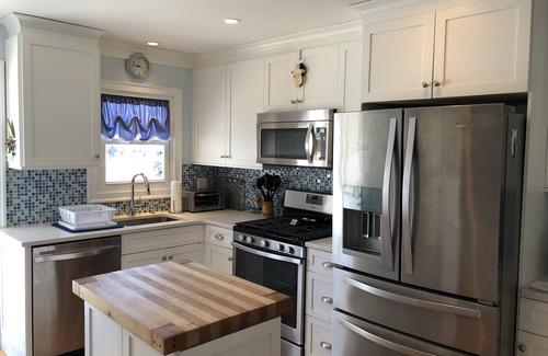 Enjoy a relaxing and fun filled stay at our newly renovated bayside home! With 3 bedrooms, 1.5 bathrooms, outdoor patio and shower and a bonus upstairs loft, we can accommodate 8-10 guests. Modern amenities include brand new central air conditioning, stainless steel appliances, Weber outdoor grill, and new beds and mattresses. With a beautiful bay view and short walk or bike ride to the beach, the location can’t be beat. House includes 4 beach badges for Ortley Beach and 4 beach chairs. Linens and towels included. Small dogs permitted as long as they are properly house trained.