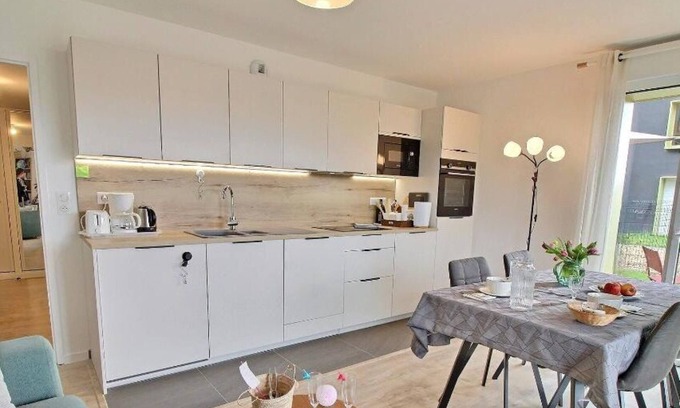 Ground floor apartment with: - Entrance hallway with storage - Main room with a fully equipped kitchen, dining area, and living room. - Separate toilet - Bedroom with a 160 x 200 cm bed and en-suite shower room - Separate toilet with washbasin. Outdoors: - Balcony furnished with a table, recliner chair, and storage cabinet, including beach toys - Enclosed garden with garden furniture, tables and chairs, and a parasol. Other information: Sofa bed in the living room, available as an extra bed or for an additional person upon request. Private and secure underground parking space. Four bicycles are available, with helmets. Extensive equipment available: sports equipment (mats, ball, dumbbells), children's games, pet kit, etc. Fully secure residence (exterior design in progress, building under construction on the balcony side). Additional service: Crepe evening (contact the owner for details). Discover this vacation rental in Vannes, a City of Art and History. Formerly the residence of the Dukes of Brittany, it is a charming town renowned for its half-timbered houses, cobbled streets, and marina. You'll enjoy a privileged setting with shops right outside the residence (bakery, supermarket, ice cream parlor), as well as the Promenade de la Rabine, designed for outdoor recreation (pétanque, children's playground, and outdoor furniture). In just 10 minutes on foot, you'll reach the historic center of Vannes, and in 10 minutes by bike, you'll reach Conleau Beach. The apartment is fully equipped for your comfort, and every detail has been designed to ensure a pleasant and peaceful vacation. During your stay, embark on a cruise in the Gulf of Morbihan or discover one of the magnificent neighboring islands, such as Belle-Île-en-Mer, Houat, or Hoedic. The pier is only 900 meters from the accommodation.