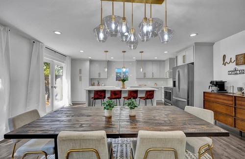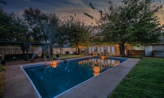 Relax under the trees at this peaceful OKC retreat featuring a private pool, cedar pergola, hammock, and swing set. Enjoy morning espresso at the coffee bar, cook in the upgraded kitchen, or unwind in the game/office room. Centrally located near Bricktown, Scissortail Park & top restaurants—perfect for everyone! Blue Haven was designed with guests in mind—from the stylish interiors to the tranquil outdoor flow. We would love for you to be our guest!