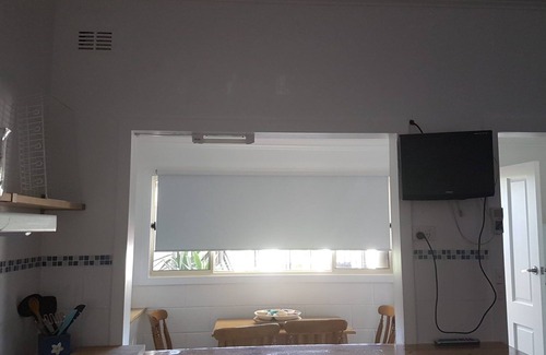 Kitchen with full size oven, microwave, fridge/freezer, dining table/chairs. Main bedroom with queen bed, bathroom with shower and w/c, TV/DVD. Split system reverse cycle air-conditioner.
