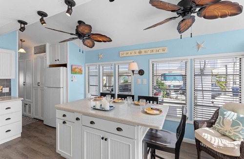 Located inside Venture Out on Cudjoe Key. A separate Registration Fee of $125 (subject to change) will be charged by Venture Out at time of arrival. This fee must be paid with cash or credit card (4% credit card fee will apply). Parking for 1 vehicle per Unit. This vehicle must fit on the driveway and not extend out to the road. The driveway measurements are 16'L x 10.5'W. If your vehicle does not fit when you arrive, you will need to see the guard gate for an additional parking pass for the overflow lot which costs $5/day. Extra parking permit may be available at the Guard Station for an additional nightly fee for a maximum of 14 days depending on availability. Must follow all the Rules and Regulations during your stay.