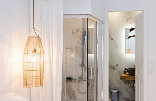 While you're here, you can enjoy all the comforts of home and more, including a refrigerator and free WiFi, as well as a flat-screen TV and Netflix. Other amenities include towels, slippers, an ironing board, and a desk.