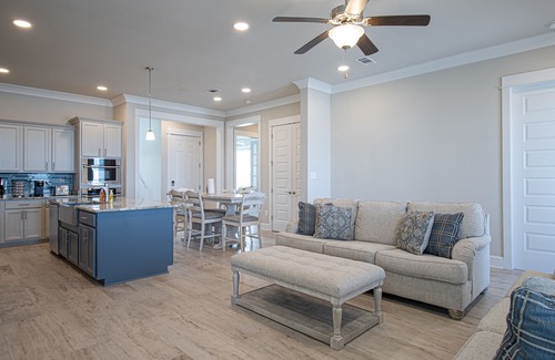 The Blue Pelican 2 is a spacious newly built 2 story home located across the street from the beach featuring beautiful Gulf and Beach views. This luxurious home features over 3000 sq feet of living space to spoil your family without feeling crowed. The kitchen, living room and dining area feature breath taking views of the Gulf waters and Beaches. The Blue Pelican 2 has 5 bedrooms/5 bathrooms with two master suites and they both have beautiful views of Gulf. The 5th bedroom can also be used as a sitting room/game room for kids. We also have an extra dining area for the kids. You can enjoy beautiful sunsets on the deck while using the outdoor kitchen and outdoor dining area. Enjoy your morning coffee on the upper deck watching for dolphins and the shrimp boats going by in our sparkling waters. All the bedrooms and living room have Samsung flat screen smart televisions.