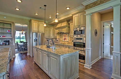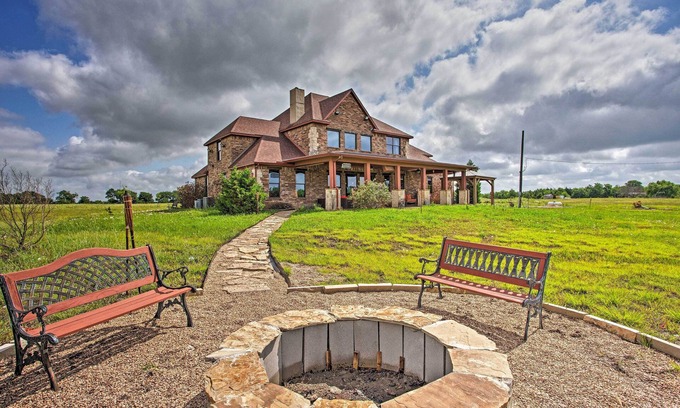 Experience ranch life at its best when you stay at the sprawling 33-acre ‘Blue Ridge Ranch.’ Boasting over 4,000 square feet of rustic luxury, this stunning 6-bedroom, 4-bathroom vacation rental offers endless options for family-friendly activities. Take a 50-mile trip to visit downtown Dallas, or spend the day enjoying the quiet surroundings from the comfort of the spacious patio. Whether you’re looking to play, explore, or simply relax, this striking home is guaranteed to meet your every need.