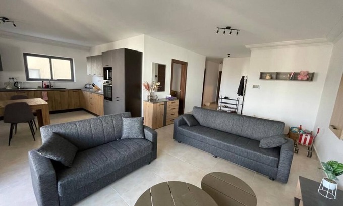 The apartment is in a centrally located area, everything is within walking distance, while still being off the main road and in a residential area allowing for a quiet and calm environment. For groceries, there are 2 convenience shops located just down the road a butcher within 250m of the apartment. The Wellbee's supermaket is 600m far from the apartment. There are also many other smaller grocery stores around the area, you'll be able to find one in every other road. There are two bus stops (Luzzu and Qawra) just down the road from the apartment, each 1 to 2 mins walk, where all the main buses pass through. The bus terminal is 550m away from the apartment (6 mins walk).